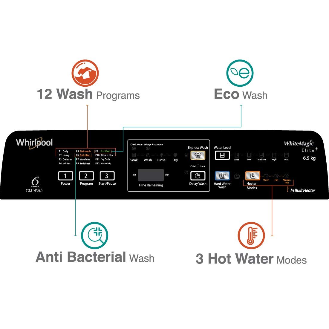 Fully-automatic top-loading washing machine; 6.5 kg capacity
