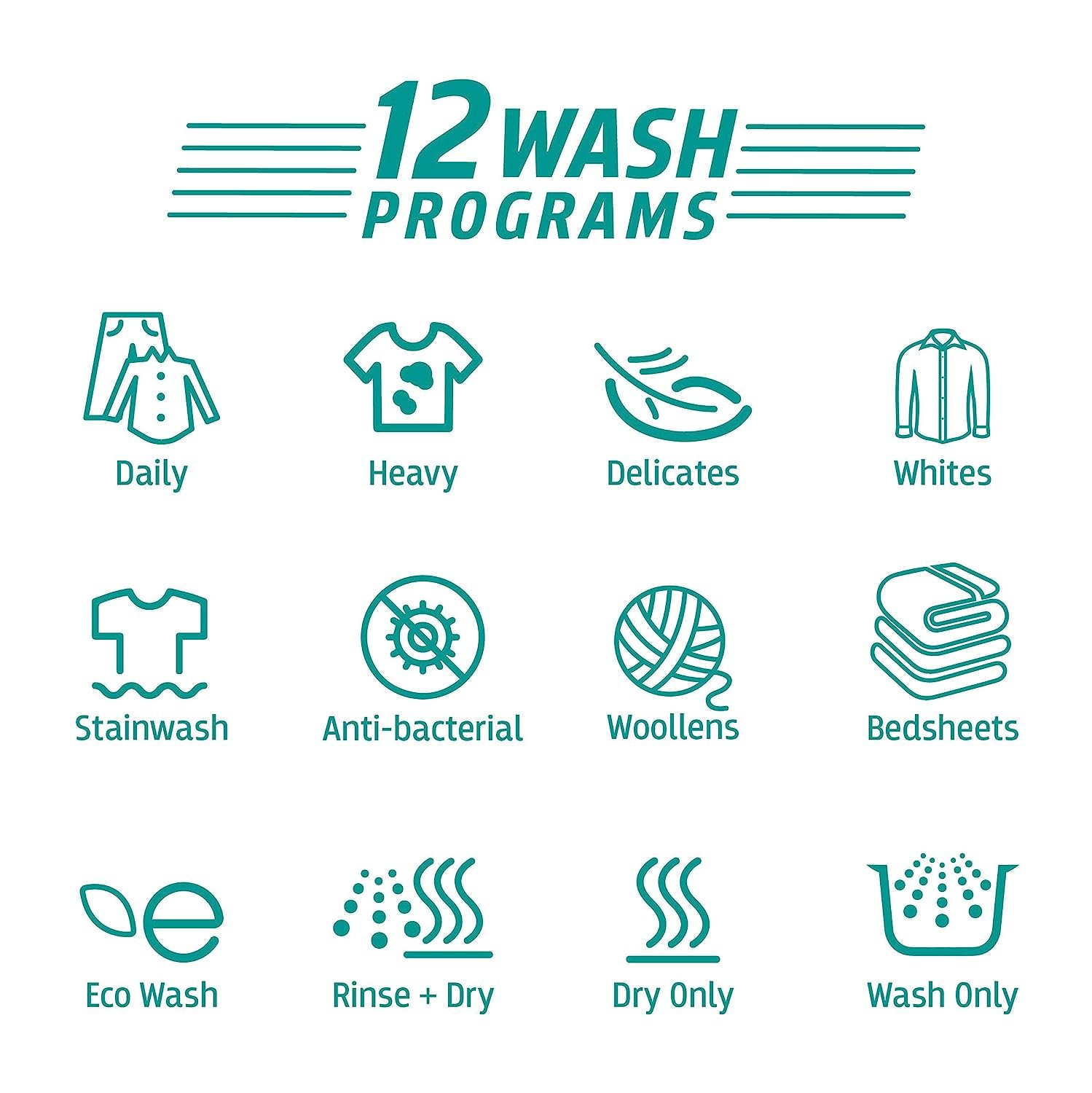 Washing machine, Water inlet pipe, detergent cup, user manual with warranty, drain hose with clamp, rat mesh