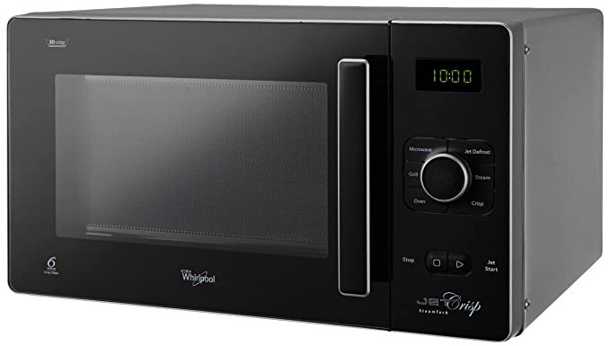 Brand Whirlpool Color Black Capacity 25 liters Special Feature Tact Button/Jog Dial Installation Type Countertop FEATURES 1. Microwave oven capacity - 25 LitresConvection and grill microwave oven with steam technology black and silver colourSteam technology provides best-steaming results 6 different power levels 280mm 2. Use stainless steel cleaner and polish to clean stainless steel surfaces use a liquid detergent or all-purpose cleanerRinse with clean water and dry with soft lint-free cloths vinegar to clean hard 3. Length - 52.1 cmDepth - 49 cm height - 29.9 cm 4.Accessories: European Crisp Pan, 2 Grill Rack(High & Low), Turntable, Turntable Support,User Manual, Steam Accessory(Black Round Shape International Steam Accessory), Special Crisp Pan Handle, Warranty Period(2 Years on Magnetron)
