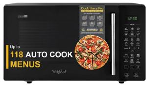Brand Whirlpool Model MAGICOOK PRO 22CE BLACK Capacity 20 litres Installation Type Countertop Special Features Auto_cook Oven Cooking Mode Convection Colour Black Voltage 230 Volts Wattage 800 Watts Fuel Type Electric Defrost System Defrost Door Orientation Left Material Stainless Steel Included Components Product, user manual & warranty card, grill rack, glass turntable Batteries Included No Batteries Required No Manufacturer Whirlpool of India Limited Manufacturer Whirlpool of India Limited, Item Weight 14 kg 400 g Item Dimensions LxWxH 45.2 x 39.5 x 26.2 Centimeters Net Quantity 1 count Generic Name Microwave Ovens