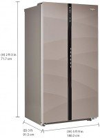 Brand Whirlpool Model WS SBS 603 CRYSTAL GOLD Capacity 603 litres Annual Energy Consumption 500 Kilowatt Hours Refrigerator Fresh Food Capacity 395 litres Freezer Capacity 210 Litres Installation Type Freestanding Part Number WS SBS 603 CRYSTAL GOLD Form Factor Side-by-side Special Features Inverter Colour Crystal Gold Voltage 230 Volts Defrost System Frost Free Shelf Type Glass Certification Energy Star Material Plastic Included Components Refrigerator, User manual, Warranty card Batteries Required No Manufacturer Whirlpool